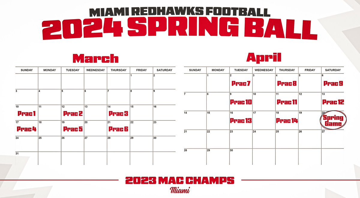 Source : miamiredhawks.comMiami Football on X: “2024 Spring Ball dates are setโผ๏ธ Stay tuned